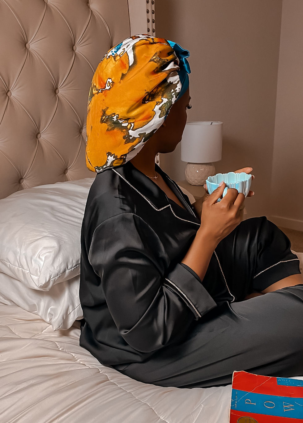 From satin-lined bonnets to exfoliating bath nets, every piece in our collection is made to elevate your self-care. We’re all about soft moments, slow mornings, and feeling good in your skin.